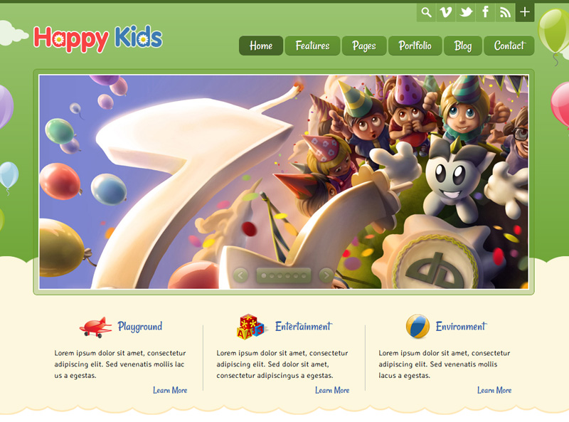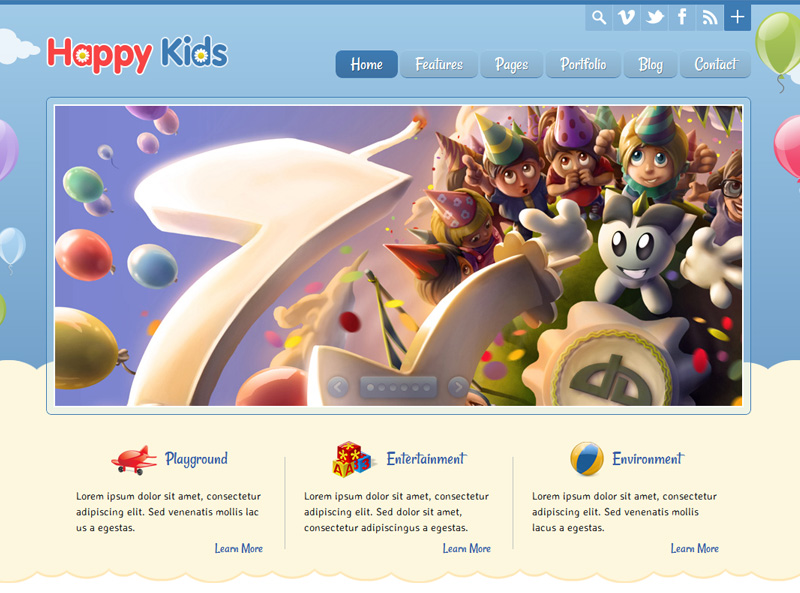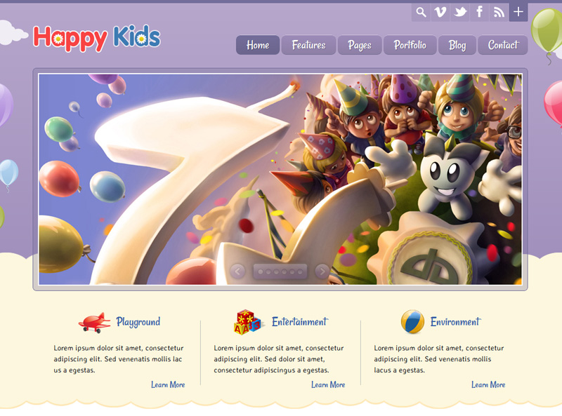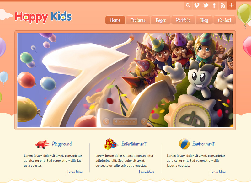 HappyKids theme includes 6 different color variations. You can customize the color of almost every theme element.